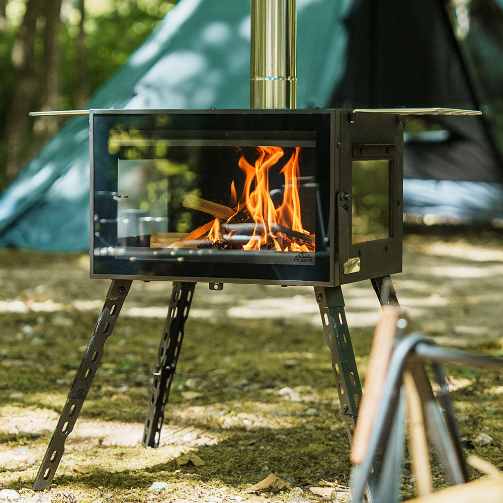 炎をじっくりと眺めて楽しめる 3面ガラスが特徴の「アウトドア薪ストーブ オーラ」