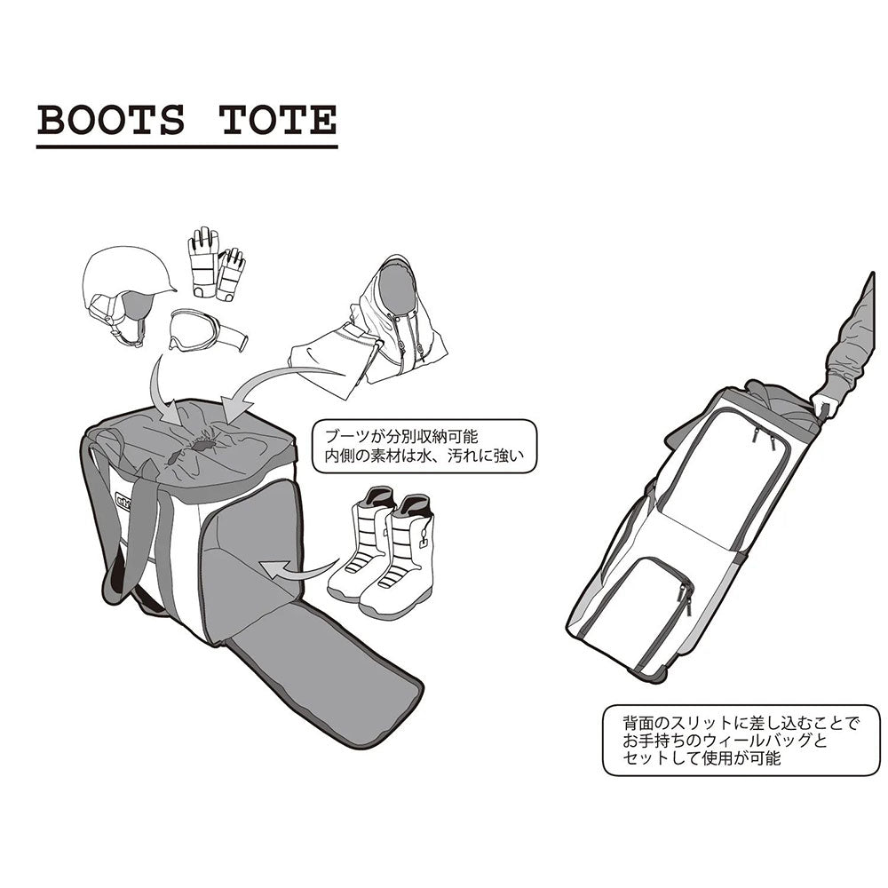 ウェア、ブーツ小物まで一式収納できるビッグトートバッグ